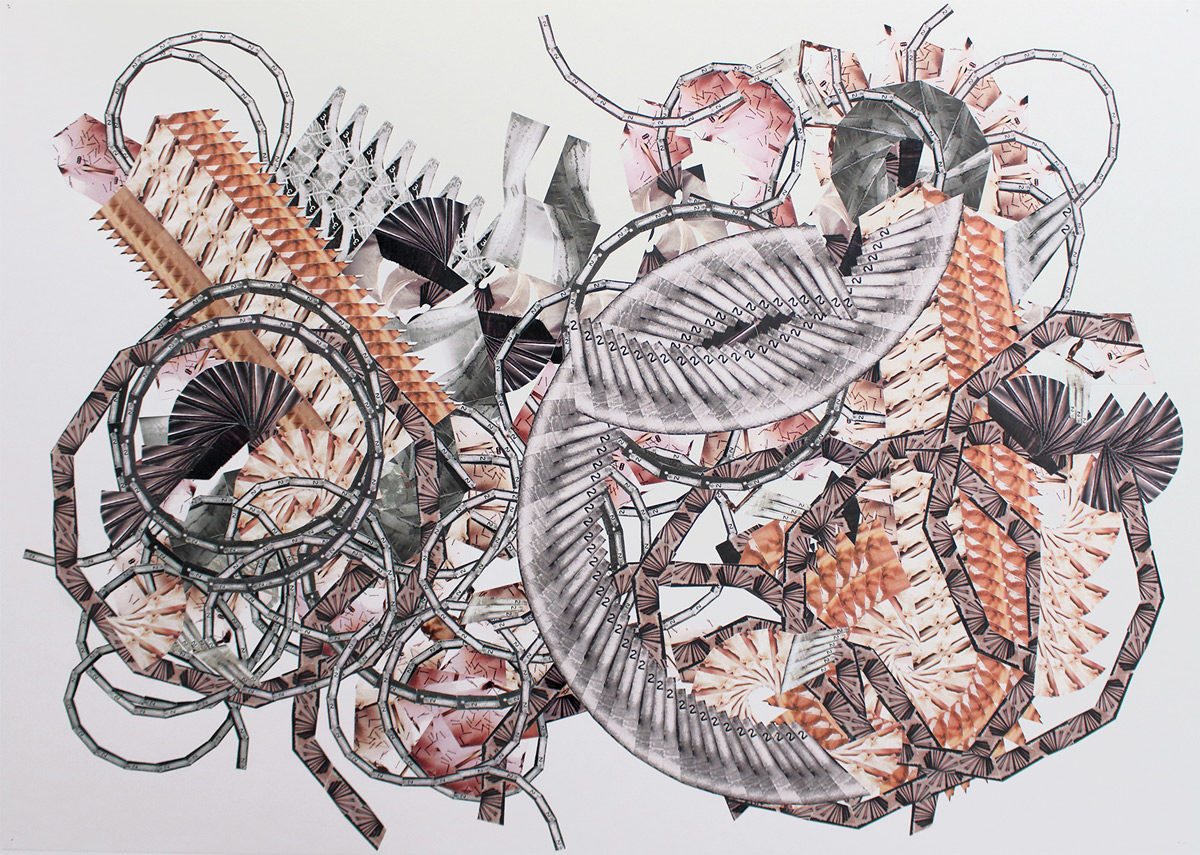 Autre tendance de cette nouvelle édition, la pratique du collage. Lindsay Caldictott ou Jonny Briggs développent tous deux une écriture automatique. La première reproduit, découpe, et colle des images rassemblées ici et là. Archives de famille, extraits de revue scientifique ou de manuels de médecine, Lindsay Caldicoot (Christian Berst Art Brut) déconstruit pour reconstruire. Souffrant de troubles psychiques, c’est au sein de l’hôpital psychiatrique dans lequel elle a été internée durant 24 ans, qu’elle a amorcé son travail de composition obsessionnel. Graphiques, minimalistes, les productions de Lindsay Caldictott sont aussi déroutantes, voire violentes. Car les Fragments et Fractales de l’artiste forment un ensemble fait d’organes et d’éléments personnels. Ici, des corps entremêlés, là, des patients enchainés et, plus loin, un utérus déchiré intitulé Autoportrait (seule production titrée). Formée au métier de technicienne en radiographie, Lindsay Caldictott s’impose ici comme une véritable chirurgienne de l’image. Quant au second, Jonny Briggs (Ncontemporary), il intervient sur des clichés afin de justifier la Broken Nature (Nature cassée, NDLR). Autobiographiques, ses mises en scène sont également engagées. Il associe photos de familles et scenarii irréels humoristiques. Une façon pour lui de montrer qu’il est ridicule de sacrifier son moi naturel en vue d’ être intégré et reconnu dans un groupe social.