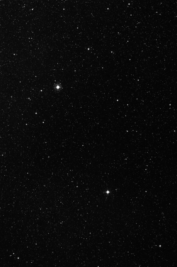 Loin de vouloir recréer des images d’époque, Thomas Ruff se distingue par une volonté de shooter non pas selon d’anciennes techniques, mais bien à partir de l’histoire même du médium. Analogiques ou numériques, il sonde les secrets des tirages, animés par différents motifs d’ordre scientifique ou de la surveillance, avant d’y apposer un regard objectif. Les premières salles dévoilent tour à tour les séries Negative (2014), Tripe (2018) et Bonfils (2021), qui mènent une longue réflexion sur les négatifs. Sous-considérée par beaucoup, cette matrice s’impose pourtant comme une véritable auxiliaire de la recherche. Dans les années 1870, le médecin et physiologiste Étienne-Jules Marey s’en servait notamment dans ses expériences chronophotographiques, dont l’objectif était d’analyser les animaux et le mouvement. Fasciné par ce processus, Thomas Ruff a alors réinvesti son potentiel en en magnifiant les imperfections.
