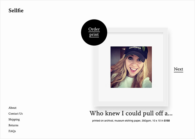 Le site web “Sellfie”, lancé en juillet dernier, est un e-shop très particulier. Comme son nom l’indique, il met en vente des selfies publiés sur Instagram, sans l’autorisation de leurs auteurs.
