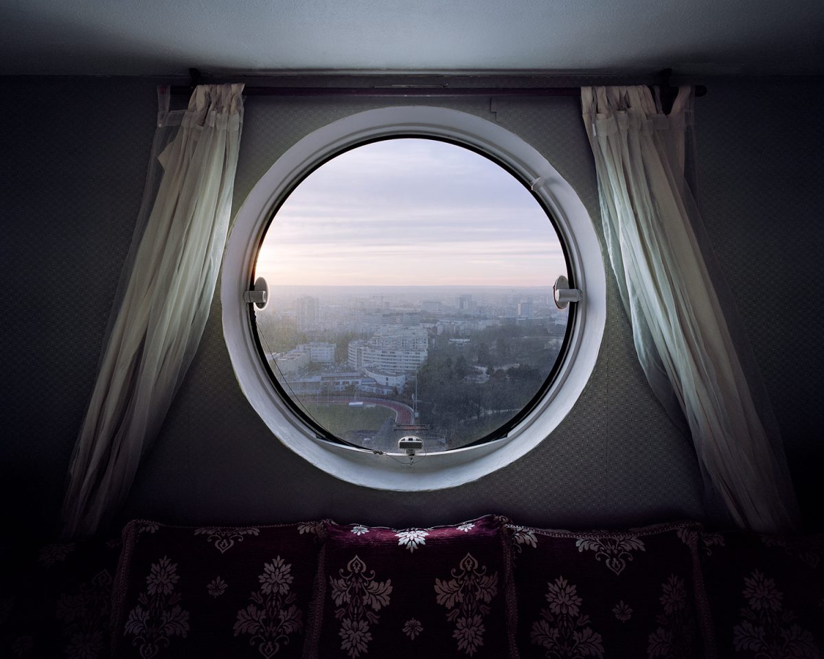 Au cours de mes quatre dernières années à travailler sur ma première série, j’ai eu l’occasion de rencontrer bon nombre d’habitants qui m’ont gentiment accueilli chez eux. Cela m’a permis d’observer leur lieu de vie. À l’époque, j’avais commencé à photographier quelques appartements ainsi que leur mobilier. Puis j’ai abandonné cette piste, me disant que Souvenir d’un Futur devait porter uniquement sur l’espace collectif extérieur qui illustrait exactement le récit que je souhaitais transmettre. En 2015, j’ai commencé à visiter plusieurs appartements des Tours Aillaud. Je sentais qu’il y avait là un magnifique potentiel qui n’avait jamais été véritablement exploité. J’étais toujours autant charmé par ce quartier et stupéfait par la forme cylindrique des logements, leur allure rétro futuriste comme bloquée dans le temps. J’avais la sensation d’être transporté dans “Playtime” de Jacques Tati. Une autre spécificité attirait alors toute mon attention : les fenêtres. De l’extérieur, celles-ci me faisaient penser à des maisons troglodytes aux ouvertures creusées dans la roche. Elles sont devenues le point d’ancrage de mon nouveau projet. La vue qu’elles offraient m’émerveillait.
