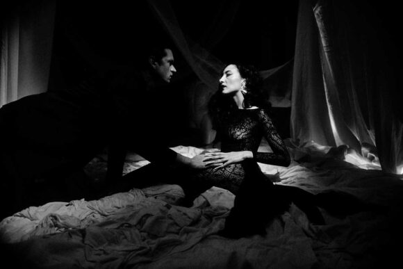 Je voulais que la lumière le dramatise, qu’elle soit un outil narratif. J’avais en tête des références précises, et nous avons travaillé, avec Quentin Chamard-Bois – mon chef opérateur et régisseur lumière – à une atmosphère de film noir. Le noir et blanc permet également de souligner des expressions marquées, puissantes qui accentuent les émotions des personnages. Dans un film court et sans paroles, il est primordial que les expressions et sentiments soient lisibles dès la première lecture de l’image.