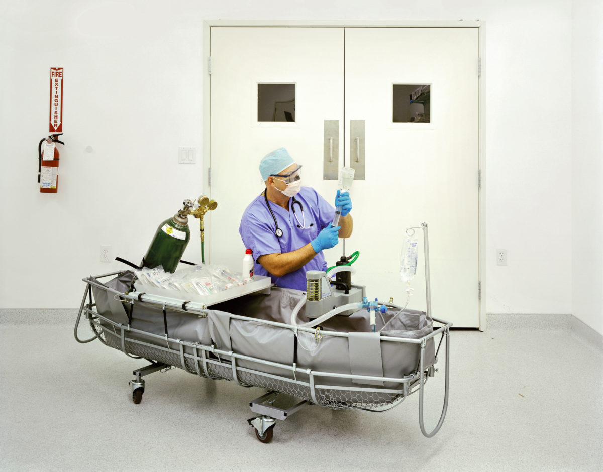 Quand Murray Ballard démarre son projet, il était sceptique, persuadé que la cryogénisation ne mènerait jamais nulle part. « Mais au fil des ans et des rencontres, je me suis mis à douter. Les techniques médicales évoluent si vite, notamment les nanotechnologies », raconte-t-il. Sa démarche respectueuse de photographe lui permet d’être accepté par une communauté habituellement méfiante vis-à-vis des médias. Son positionnement agnostique le pousse à adopter un regard neutre : « Je veux que mes photos soient les plus objectives possible, que chacun soit libre de les interpréter. J’ai travaillé avec une chambre grand format en essayant de garder nets un maximum de détails. C’est au spectateur de raconter l’histoire. » Autre choix, celui de ne montrer frontalement aucun cadavre : « Si vous voulez en voir, allez les chercher sur Google. »