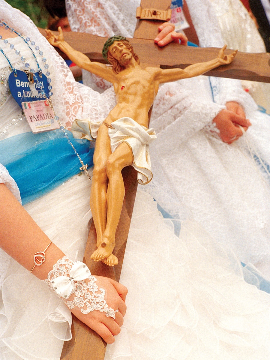 Séville, Lourdes, Stonehenge, Port-au-Prince, cortèges bariolés, atours de velours, robes fleuries… Dans les photographies de Mathieu Richer Mamousse, sous les rayons d’un soleil chaleureux, les corps se mêlent, la fête résonne et les visages s’abandonnent, s’adonnant à l’exaltation – celle du groupe ou celle de la foi. Partout, les costumes, les vêtements, les accessoires étincellent et parent les défilés humains d’une dimension sacrée. Comme un halo de tissus, de motifs épousant les formes de la spiritualité. C’est un peu par hasard que le photographe venu du sud de la France a découvert le 8e art. D’abord étudiant en langue et littérature, il découvre, lors d’un échange aux États-Unis, le potentiel créatif du médium. « Je suivais un cours d’art là-bas, et j’ai pris une grosse claque grâce à un photographe qui enseignait. Je cherchais à l’époque un moyen de réunir plusieurs choses : l’artistique, le graphisme, mais aussi des thématiques importantes, et un moyen de poser un certain regard sur le monde », se souvient-il.