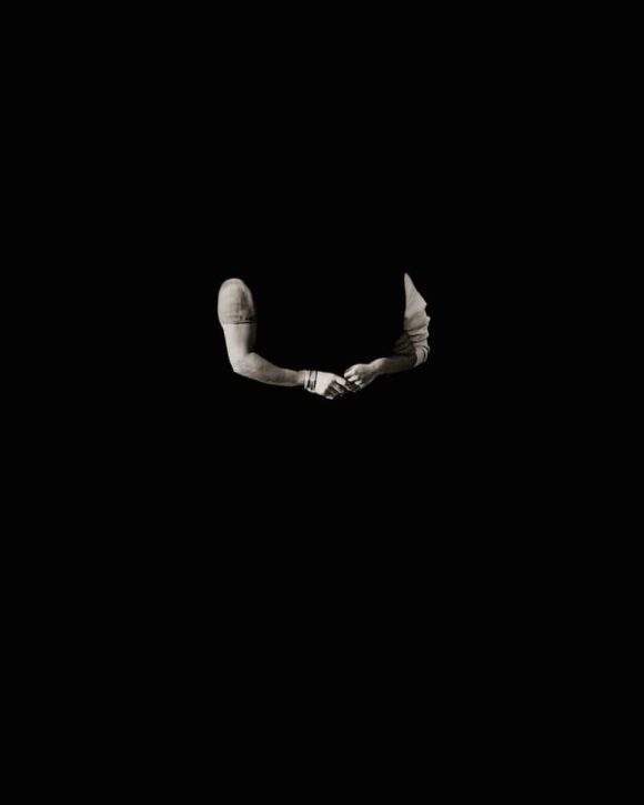 Dans Je n’écris plus pour moi seule, Lise Dua faisait s’entrechoquer deux écritures poétiques : celle de son père et la sienne. Au carrefour du récit familial et de l’exploration fantastique de notre histoire, elle donnait à voir les récurrences amusantes, les résonances touchantes des images que l’on fige pour qu’elles ne soient jamais oubliées. À travers Les loyautés – un ouvrage petit format convoquant irrésistiblement l’identité de l’album de famille – la photographe française pousse sa recherche encore plus loin. « Celle-ci a débuté en 2019, et fait suite à la série précédente. J’avais commencé à inventorier des gestes, à les classer et à les mettre en perspective avec d’autres mouvements. Cette exploration s’est poursuivie dans ce nouveau projet, sauf qu’ici, le tirage n’existe plus en tant que document – j’entre dans la matière même de l’image en recadrant un fragment pour lui donner un autre sens », explique-t-elle.