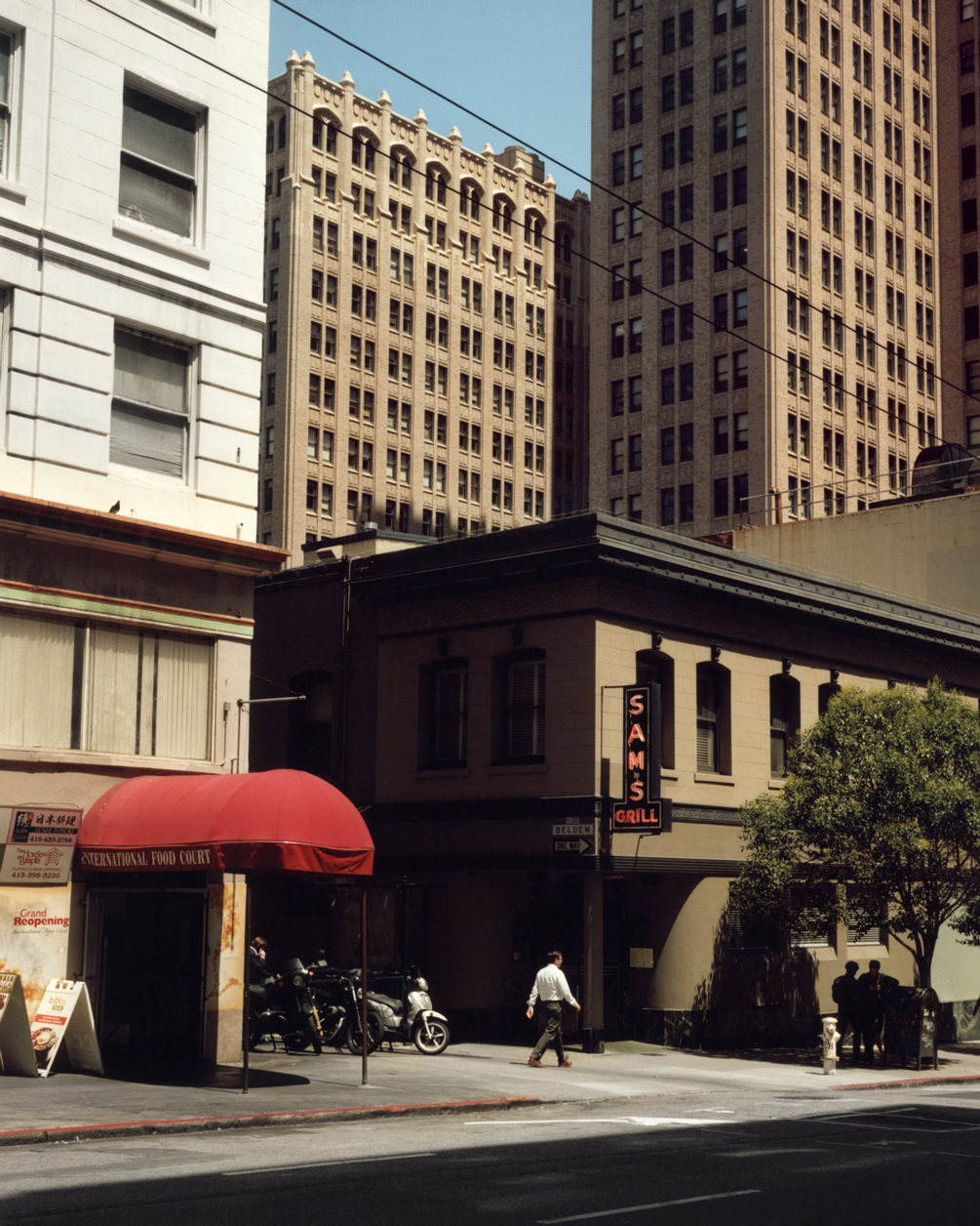 En plus d’être photographe, Carlos Chavarría, 32 ans, est collectionneur. Depuis 2012, il puise son inspiration dans différentes boutiques d’occasion, où il déniche de vieilles images, précieux supports d’expérimentations. Pour son projet Façade, il a récupéré d’anciens clichés chez un antiquaire de la baie de San Francisco, où il réside actuellement. Les auteurs sont des photographes de presse ayant couvert conférences et réunions. À ces images d’archives, il mêle ses propres clichés. La vision du monde des affaires qu’il nous livre ici est tantôt lumineuse, tantôt floue, toujours teintée de symboles. Façade donne à voir des employés, toujours de dos, faisant face à d’imposants bâtiments. Quel est donc le vrai visage du milieu ? Comment l’argent influe-t-il sur l’apparence ? Comment les usagers interagissent-ils avec leur environnement ? À chacun de se forger sa propre opinion sur ce milieu obscur…