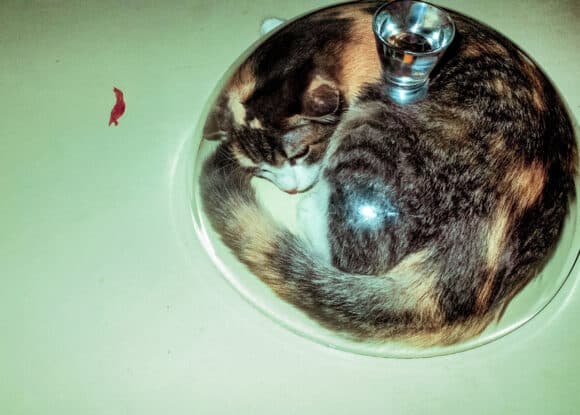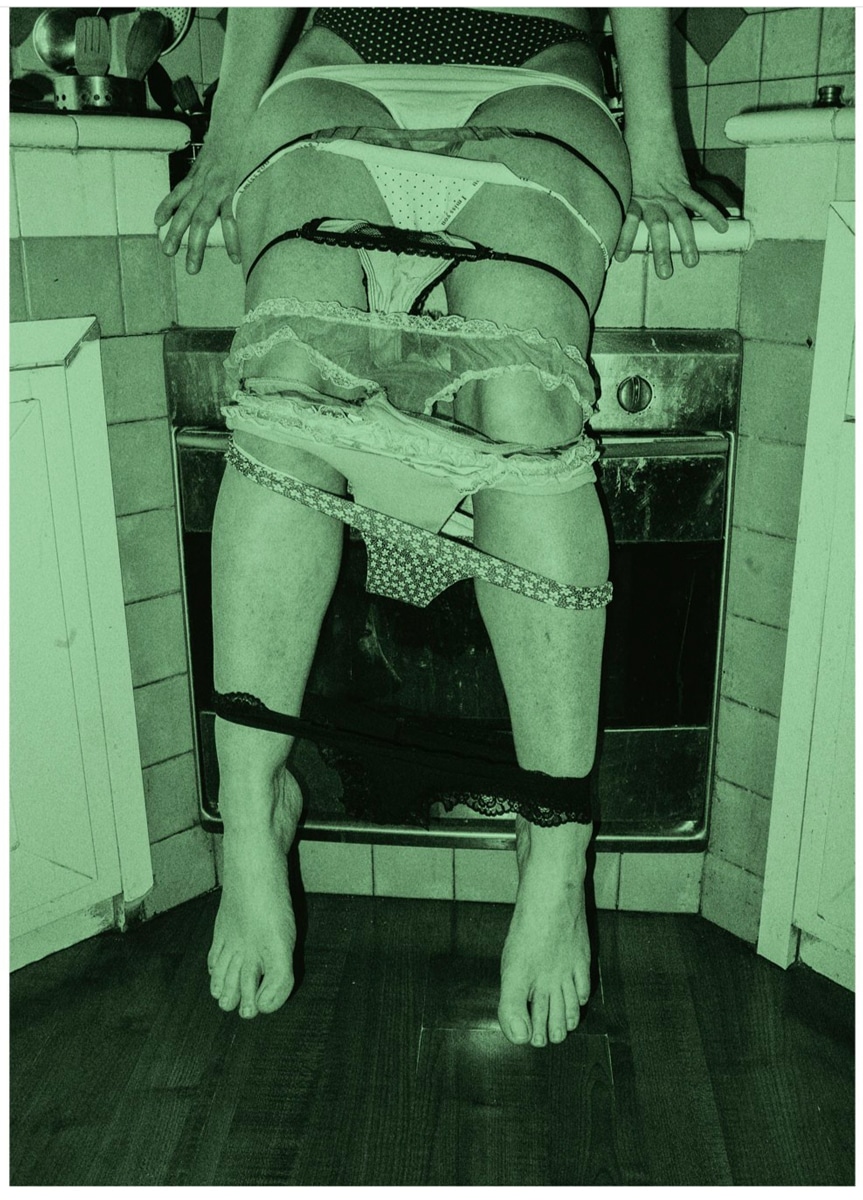 Elena, installée à Rome, travaille sous le curieux pseudonyme d’Insect Panic. Aussi énigmatique que son œuvre, elle résiste à nous donner le fond de cette dernière – seulement les formes. Mais qu’est-ce que la photographie pourrait avoir à faire avec la panique d’un insecte, peut-on se demander ? Il y a quelque chose de trivial et d’abrupt dans son travail, autant qu’une dimension viscérale. L’artiste, qui se représente essentiellement elle-même à travers des autoportraits, affirme mettre en scène le corps « d’une manière ludique et paranoïaque ». La jeune femme se décrit comme étant une personne plutôt apathique, et parfois très paresseuse – en manque permanent de stimulation. Orienter l’appareil photo de façon réflexive, pour la première fois, a été sa grande révélation. Sous l’objectif, elle ne se reconnaît plus, et se mettre en scène crée systématiquement en elle un effet d’agitation. De cela naissent des autoportraits mémorables, centrés sur l’utilisation du corps d’une manière surréaliste. Sa méthode ?Manipuler ses clichés, pour les rendre à son image. Elle « valorise les notes discordantes », et élabore des contrastes, notamment grâce au tirage cyanotype. Sur un fond qui prend parfois une couleur violacée, bleuâtre et livide, le trash qu’elle défend – de la cruauté envers les animaux à son propre corps déformé – se lit avec ironie. Son travail s’inscrit assurément dans un certain type de photographie qui raconte la réalité de manière brute et cynique, et tente en même temps d’échapper aux stéréotypes, « qui ne m’appartiennent pas », déclare-t-elle. On y trouve tout ce qui caractérise l’humain et le primitif : le corps, la nourriture, la peur, l’animalité. Comme la rêverie, et la créativité.
