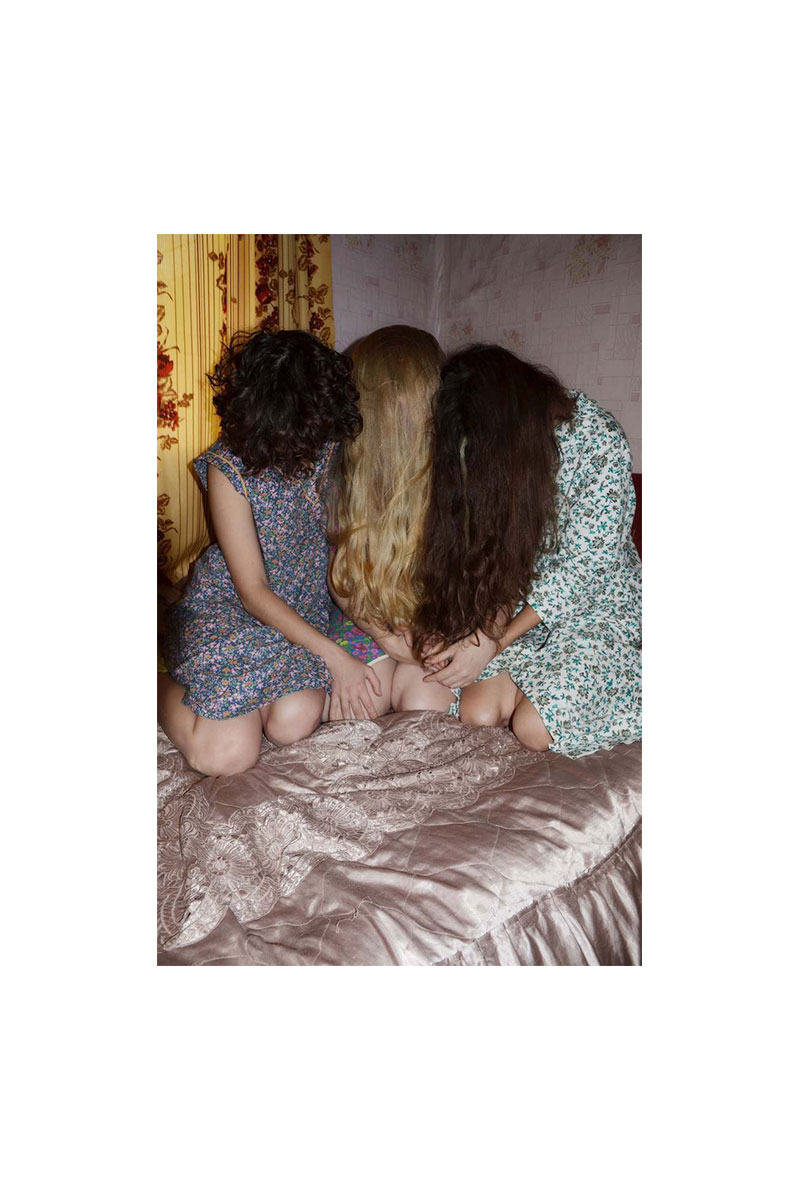 « De manière générale, je m’intéresse à la photographie conceptuelle. Je crois que l’intensité et l’agressivité de mes prises de vues font partie intégrante de mon style ». C’est ainsi que Kristina Rozhkova introduit son approche du médium. Installée à St-Petersbourg — où elle suit des cours d’art à l’école Fotografika −, l’artiste russe de 25 ans développe une œuvre abrupte à l’esthétique incisive, dépourvue de retouches. Dans son dernier projet, intitulé The Bliss of Girlhood — ou Girls −, elle examine le passage de l’enfance à l’âge adulte. Elle interroge cet entre-deux, cette zone latente, parfois floue, où les états d’esprit et les corps muent au diapason, où la puberté s’impose et où les désirs de chairs sont clandestins. Ici, elle s’amuse à juxtaposer des thématiques opposées : sujets naïfs et juvéniles sont mêlés à des éléments érotiques, crus, voire violents. « Le thème de “Girls” est plutôt de pouvoir attraper et réexaminer ce moment liminal que j’ai moi-même dépassé. Cette série est une tentative d’aller au cœur de la vitalité en tant que concept, d’examiner la vie sous toutes ses formes. L’“enfance” et la “félicité” convergent avec la “sexualité agressive” et l’“inquiétude” » explique-t-elle. Si l’approche de Kristina Rozhkova interroge autant qu’elle perturbe, elle parvient néanmoins à insuffler l’idée que nous sommes faits de contradictions, et que c’est précisément cela qui nous rend fascinants.